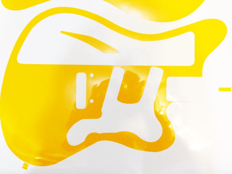 These guitar routing templates are cut from adhesive vinyl. This gives you accurate control over the finer points of setting up your routing template. Better than paper, they are computer cut and don’t move when  applying. Can be applied directly to the wood for a body or on MDF or Acrylic. Each template includes the models specific scale guide and 22 or 24fret neck template. They also include popular size bolt on neck templates to help adjust your build.  All have options for left or right handed.